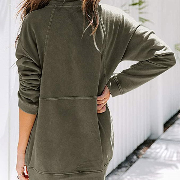Simple Style Long Sleeve Stand Collar Solid Color Sweatshirt
