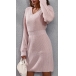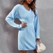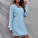 Simple Style Long Sleeve V-neck High Waist Slim Fit Knit Dress