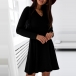 Simple Style Long Sleeve V-neck High Waist Solid Color A-line Dress