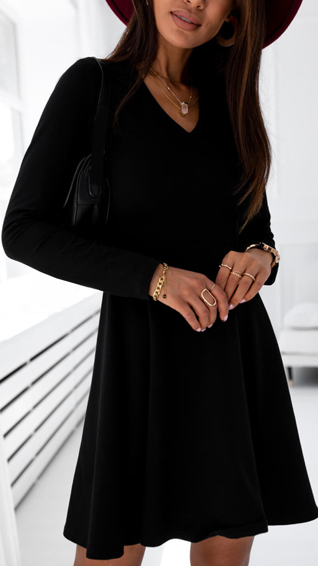 Like this simple style dresses since it can offer you more matching styles? Then you can make your eyes focused on this dress. Crafted in a solid color,with long sleeve,v-neck and an a-line silhouette,this dress not only can showcase your slender figure,but also can portray your elegant and delicate image.