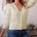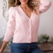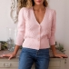 Simple Style Long Sleeve V-neck Single-breasted Solid Color Knit Cardigan