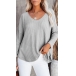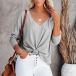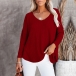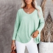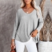 Simple Style Long Sleeve V-neck Solid Color Loose T-shirt