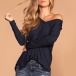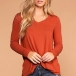 Simple Style Long Sleeve V-neck Solid Color Loose T-shirt