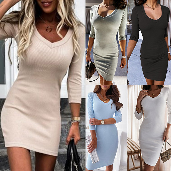 This dress boasts a solid color,finished with long sleeve,v-neck and a fit silhouette,which is a good weapon to showcase your slender figure. Moreover,its super soft and breathable fabric can ensure you a long-lasting comfort. In these early autumn days,this long sleeve dress is your perfect partner.