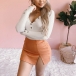 Your wardrobe calls for such a simple,cozy,stylish and all-match top. Boasts a solid color,which makes it look simple yet generous,while the v-neck and button details will make this piece look more stylish and attractive. Add this piece to your wardrobe and it won’t let you disappointed!