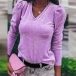 Simple Style Long Sleeve V-neck Solid Color T-shirt