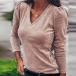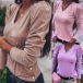 Your wardrobe calls for such a simple,cozy and all-match t-shirt. It boasts a solid color,finished with long sleeve and v-neck design,this piece bears a simple design style,but it can offer you different matching styles while it maintains the style and comfy. So why not introduce this piece to your wardrobe?