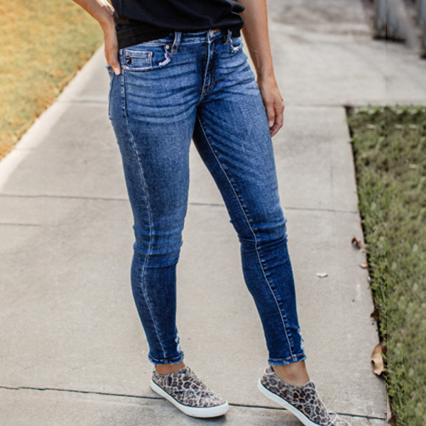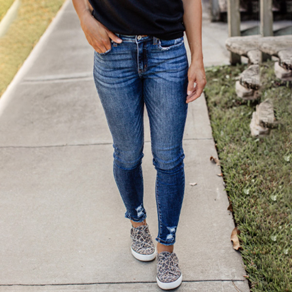 Your wardrobe is not complete if without a stylish and all-match jeans. This jeans is designed with middle waist and a fit silhouette,which can better showcase your slender figure. The ripped details will add some extra charm. No matter what kind of tops you pair with,you can hardly go wrong!