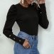 Your wardrobe calls for such a simple,cozy and all-match t-shirt. Boasts a solid color,this piece is sure to offer you a comfortable day with its soft and breathable fabric. And the puff sleeve design will further enhance its entire charm. Another design highlight is that it can offer you different matching styles.