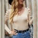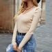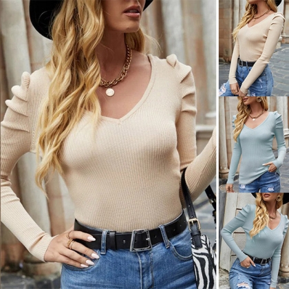Hey,girls,your wardrobe calls for such a simple,cozy,stylish and all-match t-shirt. It comes with a solid color,the v-neck and puff sleeve design will break the simple and dull design style. On the contrary,these details can enhance the entire charm of this t-shirt. You can match it with any bottoms you like to start your wonderful day.