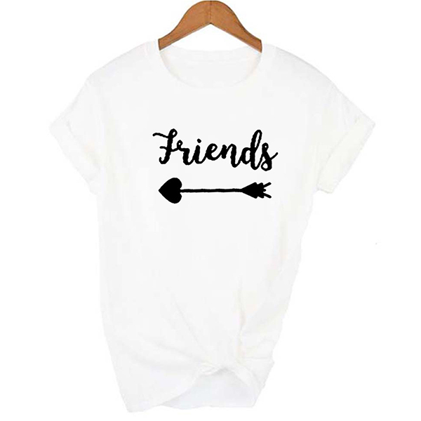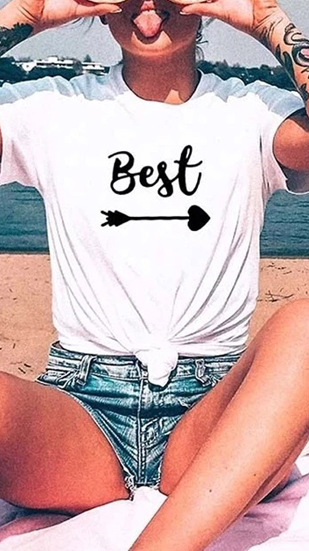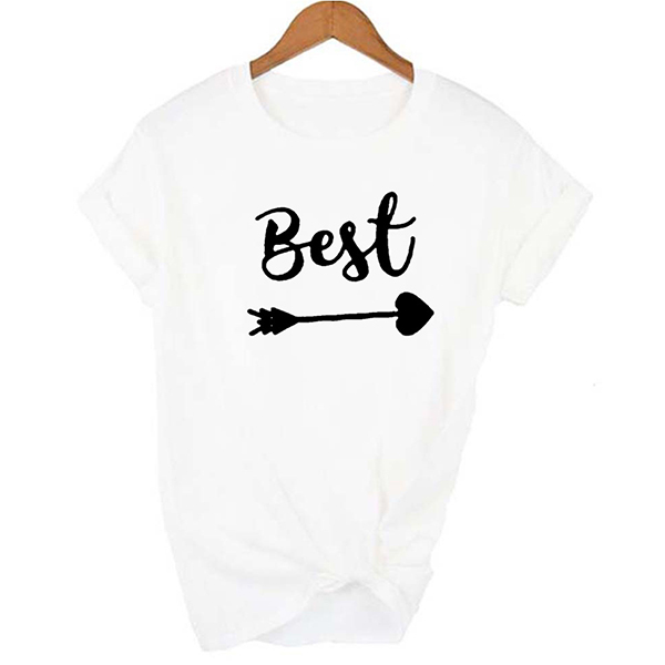 T-shirt Besties Imprimé à Manches Courtes et Col Rond de Style Simple