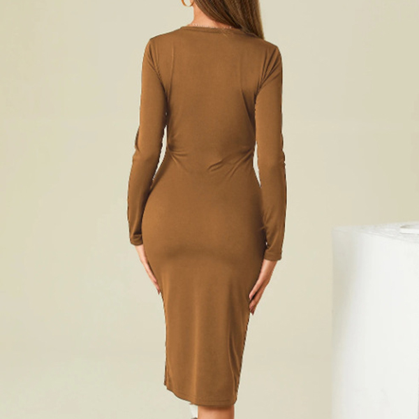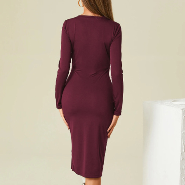 Like simple style dress? Then look no further than this piece! This dress comes with a solid color,finished with long sleeve,round neck and a fit silhouette,this dress can showcase your slender figure. And the slit hem design can lend you a dash of sexy and flirty vibes. No matter for your busy workdays or weekend out,this dress can be your wise choice.