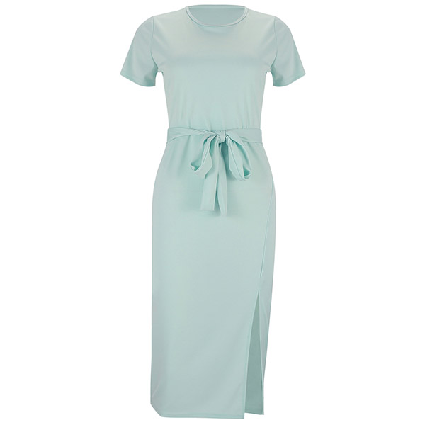 Start your wonderful day with a simple style dress such as this creation. Solid color style,the tight silhouette design can showcase your slender figure,while the slit hem design can lend you a dash of flirty and feminine vibes. So why not take interest in it?