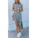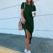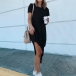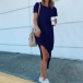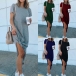 Simple Style Short Sleeve Round Neck Slit Hem SOlid Color T-shirt Dress