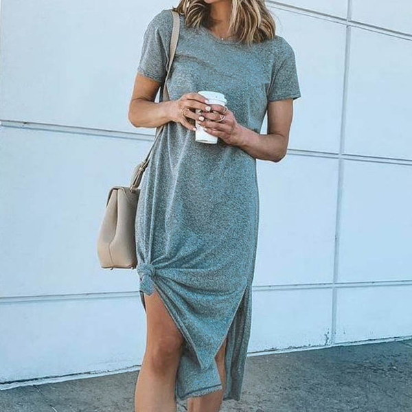 This t-shirt dress comes with a solid color,finished with short sleeve and round neck design,which can ensure you a comfortable day with its soft and breathable fabric. Moreover,the slit hem design will add some extra charm. For your daily out and weekend strolling,this t-shirt dress is a perfect partner.
