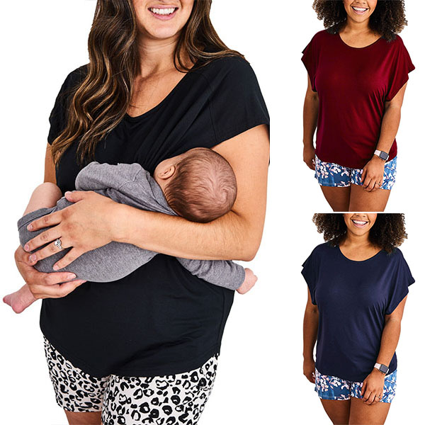 Thanks to the super soft and breathable fabric, you can have an utmost comfort in this t-shirt. Solid color style,finished with short sleeve and round neck design,this piece bears a simple design style,but it can offer you different matching styles. It is also a good choice for these breastfeeding mothers.