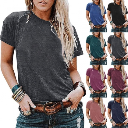 Combines of simple,cozy and stylish vibes,this t-shirt is yearning for a place in your wardrobe. Crafted in a solid color,with short sleeve,round neck design,this piece bears a simple,classic design style. Not only can keep the comfy,but also can offer you different matching styles,so why not buy one?