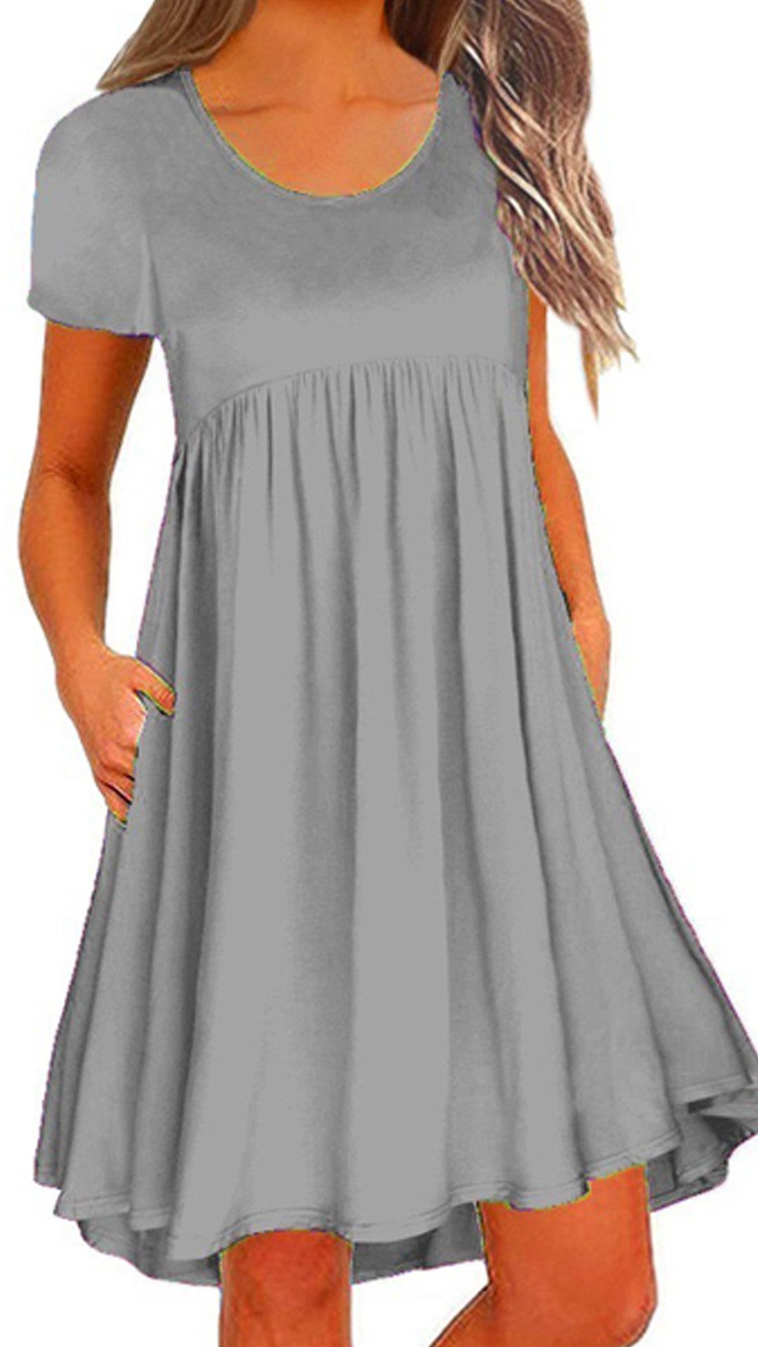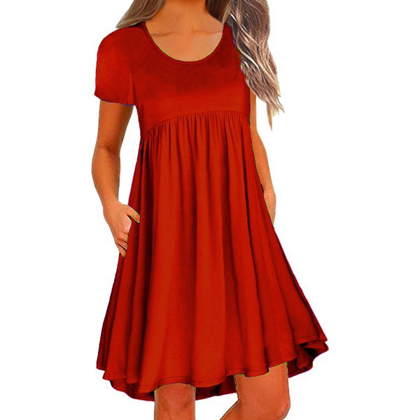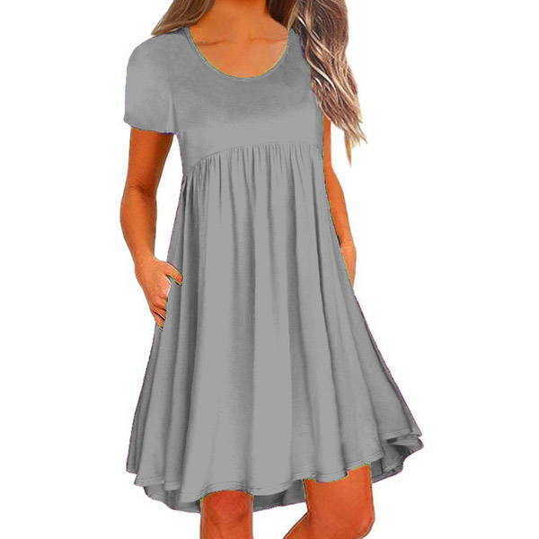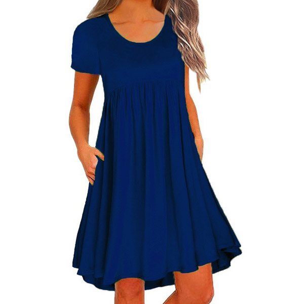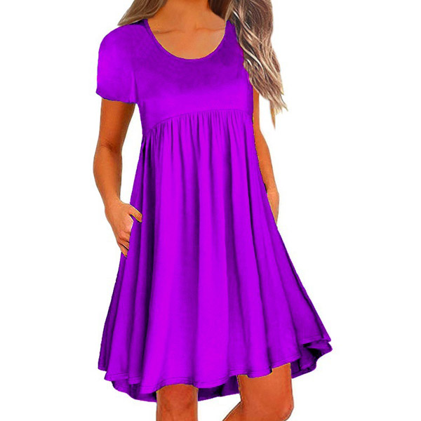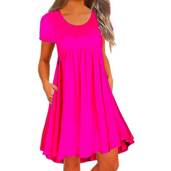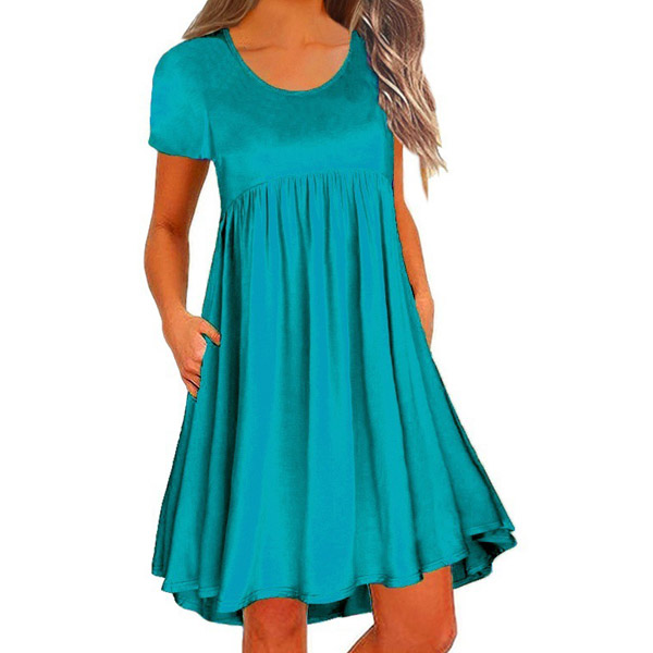You have no need to worry about what to wear on your lazy days or causal weekends if you have this dress in your team. Solid color style,finished with short sleeve and round neck design,this piece bears a simple design style,but it can ensure you a comfortable day with its soft and breathable fabric. Different colors for your optional.