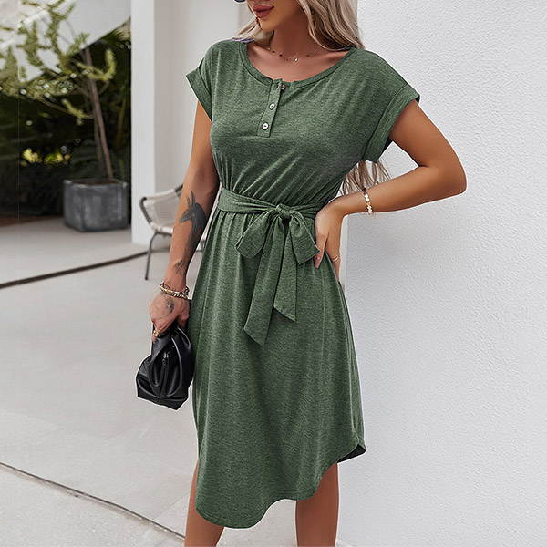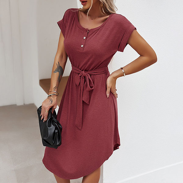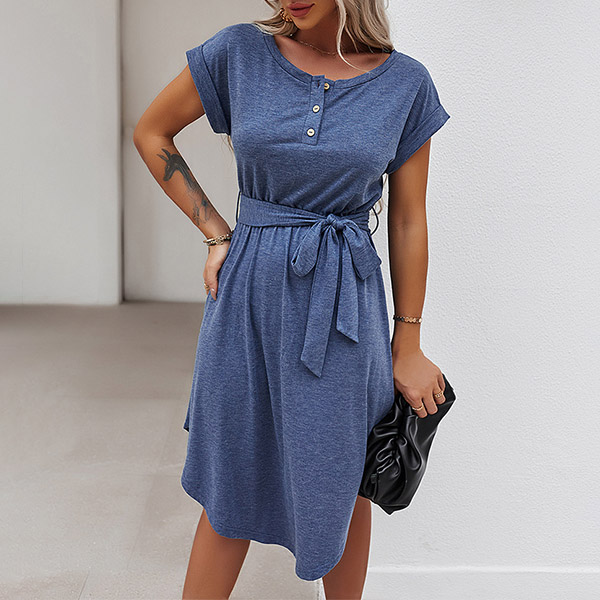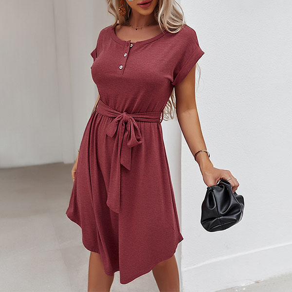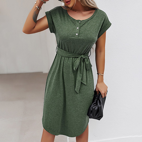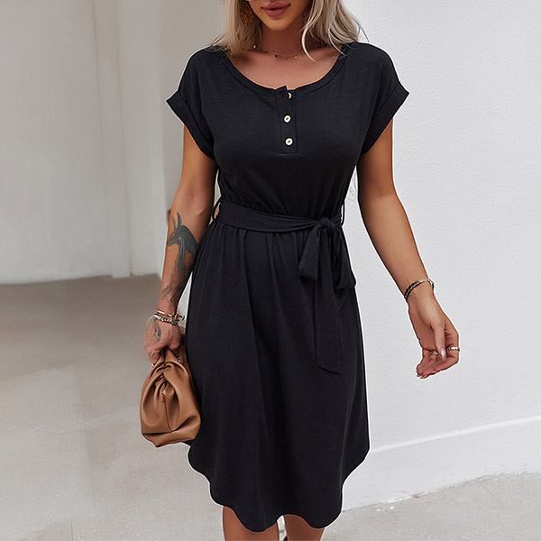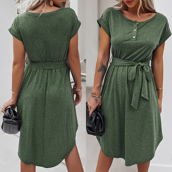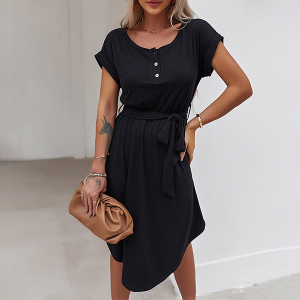 As for your daily out,you can trust in this dress to have a simple,laid-back yet fashionable style. It comes with a solid color,finished with short sleeve and round neck design,this dress is sure to give you an all-day comfort with its soft and breathable fabric. You can just need to match with your favourite shoes,then you can be ready to go out!