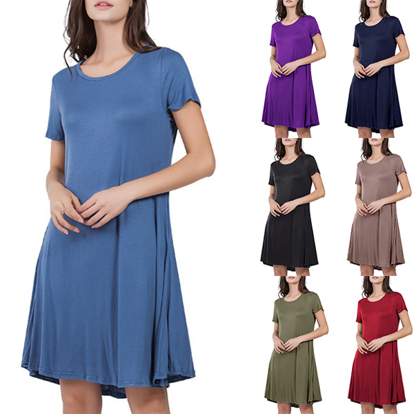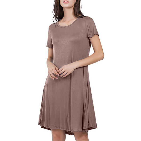 For your rushed mornings,you mush ave no time to think about what to wear. So we suggest you this simple and easy-to-wear dress. Boasts a solid color,with short sleeve and round neck design,this piece bears a simple design style,but it can offer you a cozy yet stylish style.