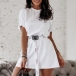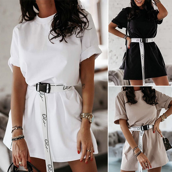 When you have no time to think about what to wear for your daily out,you can just slip into this dress to get prepared to look stylish. Solid color style,with short sleeve and round neck design,simple,cozy yet stylish. If you wanna look more delicate and stylish,you can consider adding a thin waistband to boost your entire charm.