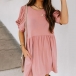 Like simple style piece? Then you have have a try this dress. Boasts a solid color,finished with short sleeve and round neck design,this dress is sure to give you an utmost comfort with its soft,breathable fabric and loose silhouette. You can add a sparkle necklace if you wanna enrich your overall dress up.