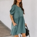 Simple Style Short Sleeve Round Neck Solid Color Loose Dress