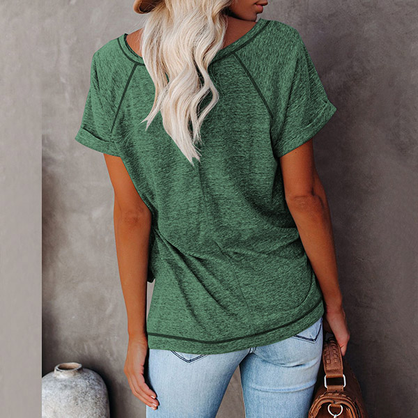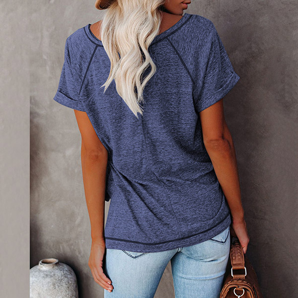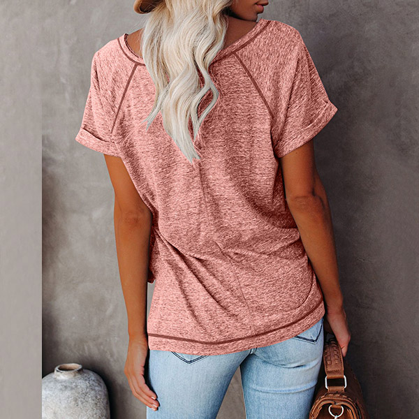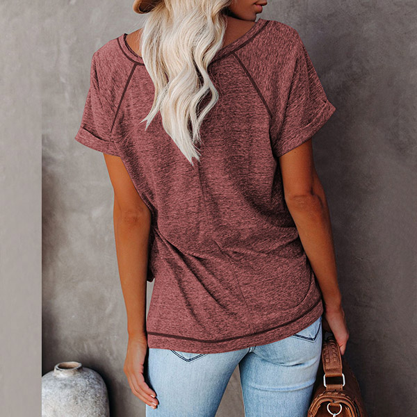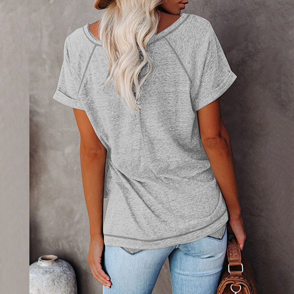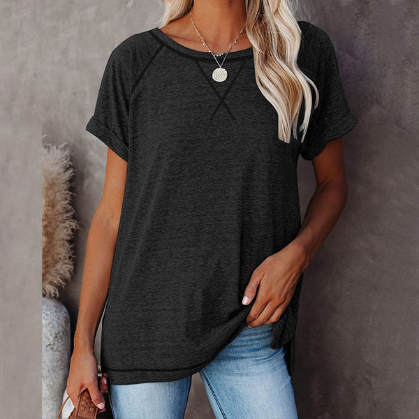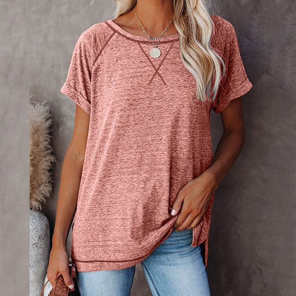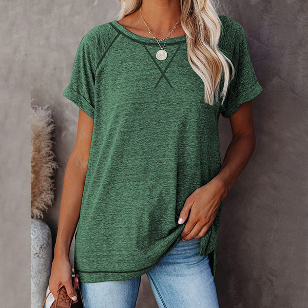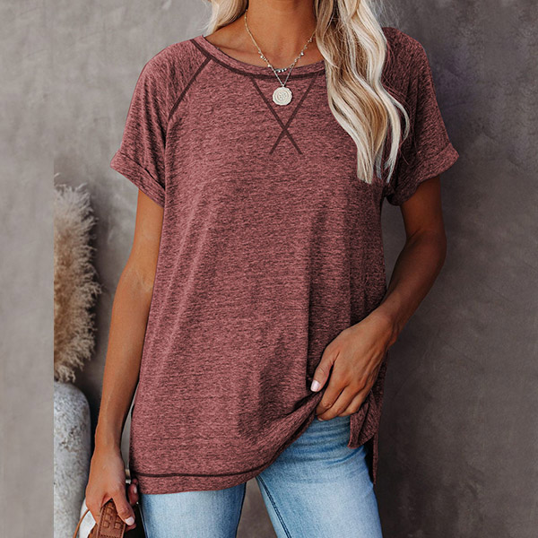 A perfect combination of simple,cozy and stylish vibes,this t-shirt is yearning for a place in your wardrobe. Crafted in a solid color,finished with short sleeve and round neck design,this piece bears a simple design style,but it can offer you different matching styles. So why not take interest in it?
