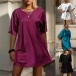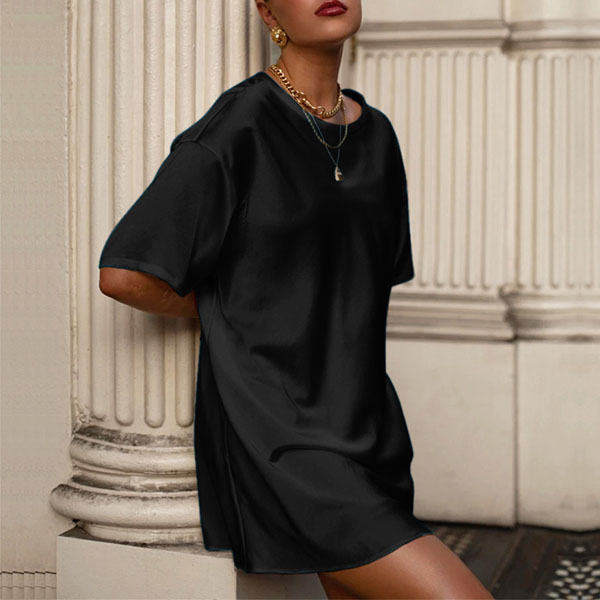 On your lazy days when you don't wanna do your daily matching,you can just slip into this easy-to-wear t-shirt dress to stay comfy and relaxed. Solid color style,with short sleeve and round neck design,this t-shirt dress is sure to offer you an all-day comfort. Simply need to match with your casual shoes,then you can be ready to go out!