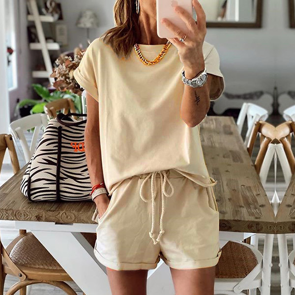 Wanna a simple style? Then let this two-piece set help you. Solid color style,including a short sleeve round neck t-shirt and a shorts,crafted from soft and breathable fabric,this two-piece set can promise you a comfortable day. For your home time and lazy days,this two-piece set can be your perfect choice.