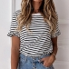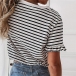 Your lazy days and casual weekends call for such a simple,cozy yet stylish t-shirt. The stripe element design makes it look so stylish and popular,white the ruffle cuff design will further enhance its charm. All-match design allows to be matched with different style bottoms like shorts,skirts,jeans and so on.