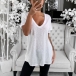 A perfect combination of simple,casual,cozy and stylish vibes,this t-shirt is yearning for a place in your wardrobe. It boasts a solid color,with short sleeve,v-neck and a loose silhouette,this piece is sure to give you a comfortable day while it offers you different matching styles.