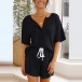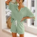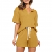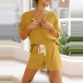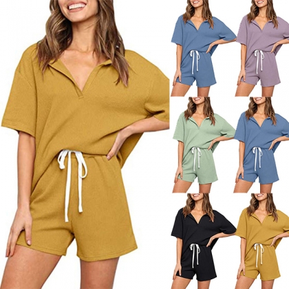 Simple Style Short Sleeve V-neck Solid Color T-shirt + Shorts Home-wear Two-piece Set