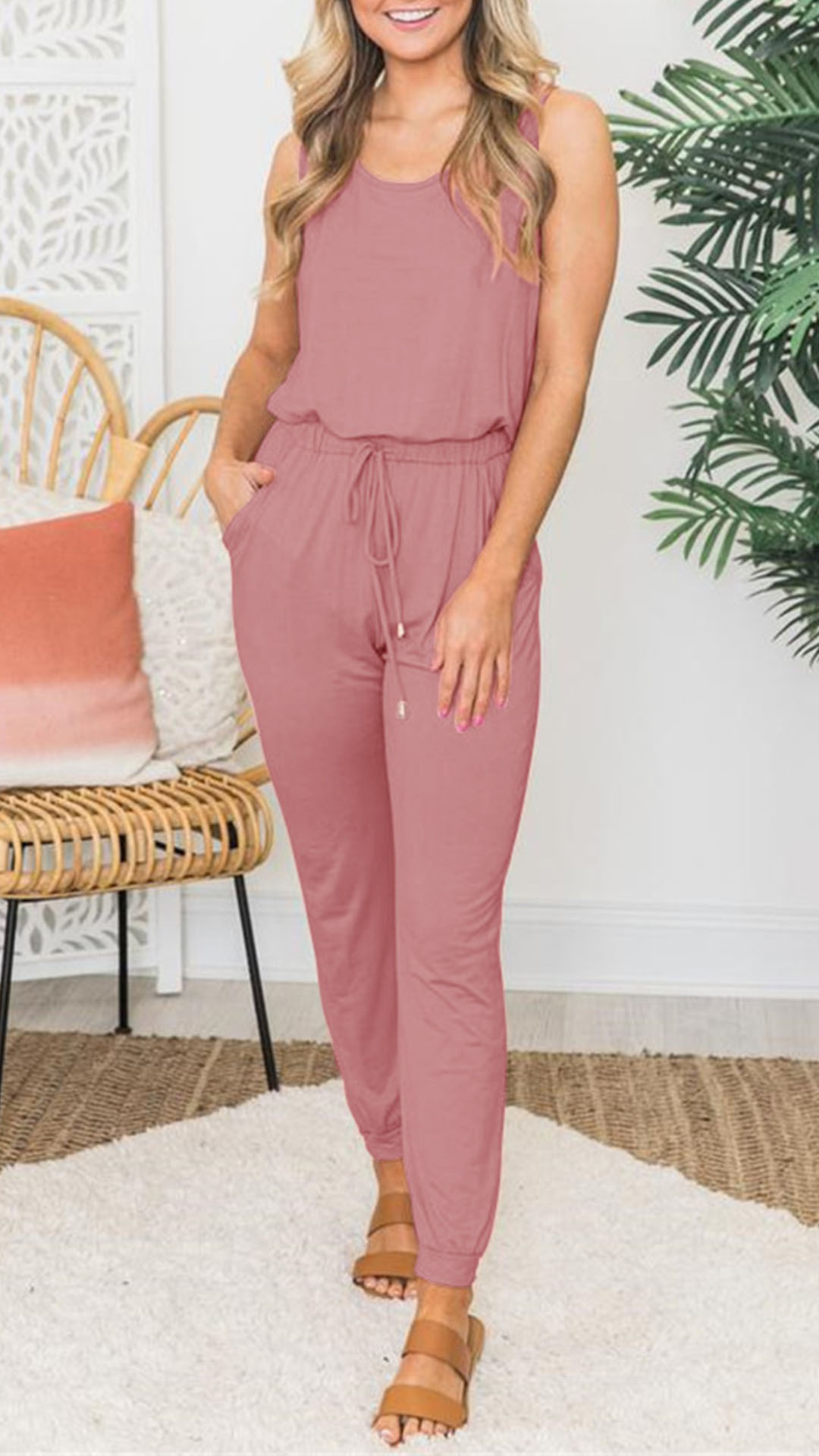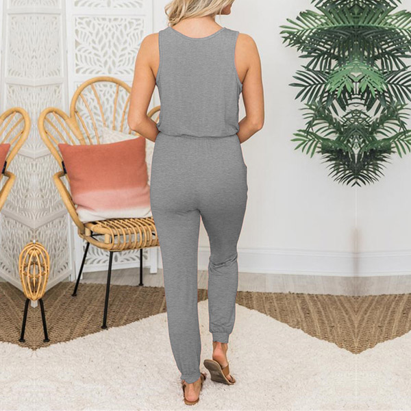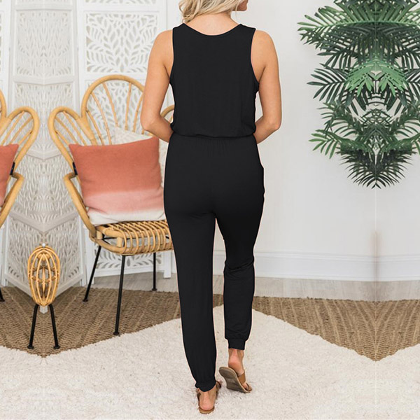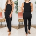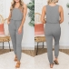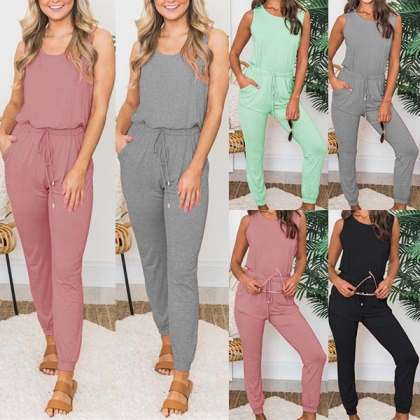Simple Style Sleeveless Round Neck Drawstring Elastic Waist Solid Color Jumpsuit