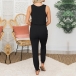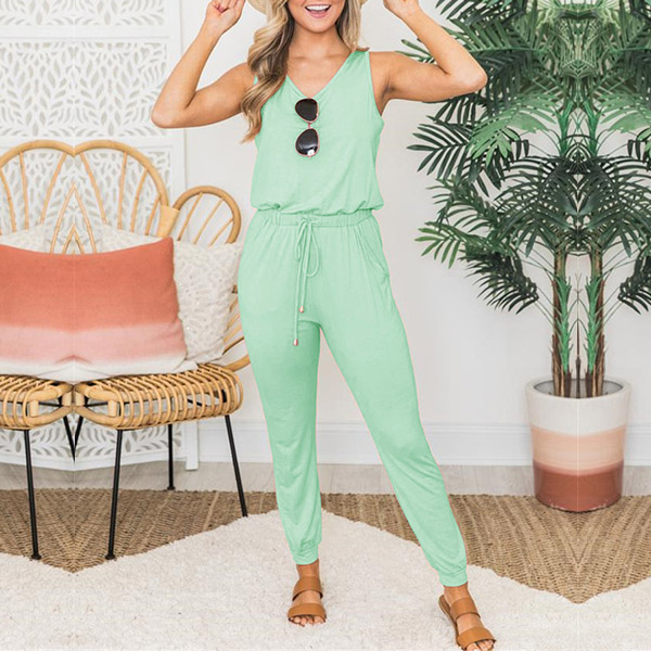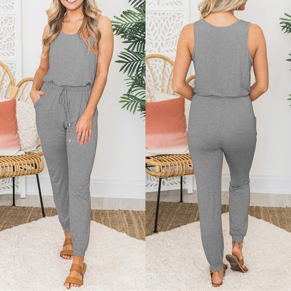 Hey,girls,you can just update your summer wardrobe ensemble with this sleeveless jumpsuit. Comes with a solid color,the elastic waist with drawstring design can better showcase your slender figure. Just slip into this wonderful piece to start your wonderful day!