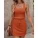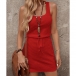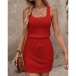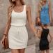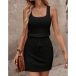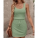 Simple Style SLeeveless Round Neck Drawstring Waist Tank Dress