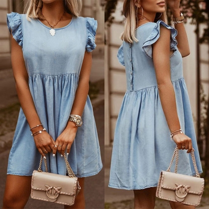 When the hot summer season hits,this sleeveless dress is worth to arouse your attention. The ruffle cuff design can lend you a dash of sweet and feminine vibes. Thanks to the soft and breathable fabric,you can have a long-lasting comfort in this dress. Just slip into this dress to start your wonderful day!