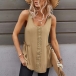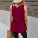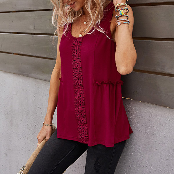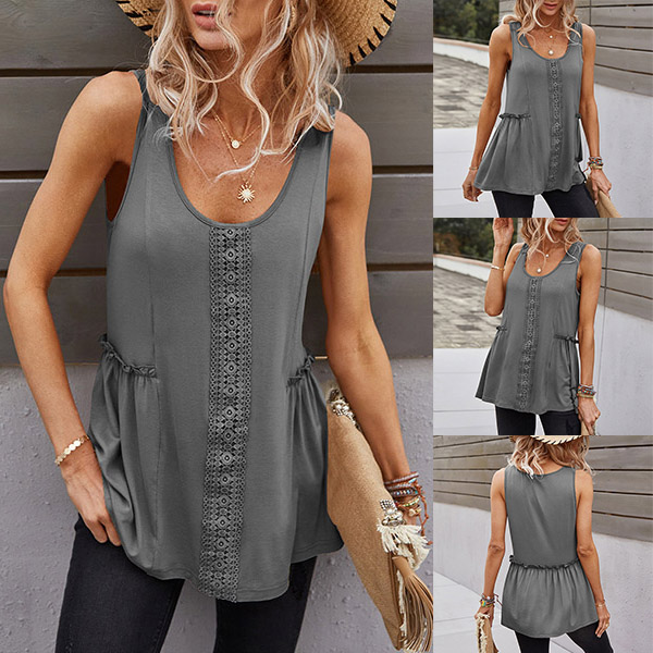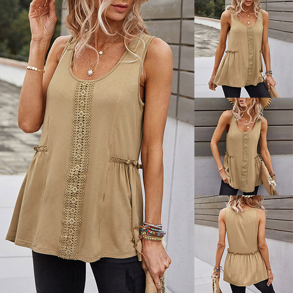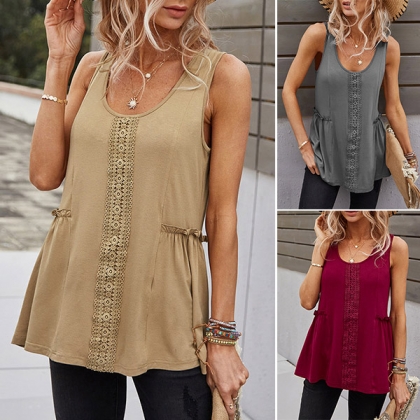As for these hot summer days,you need such a cozy yet stylish top. It comes with a solid color,with sleeveless,round neck and a loose silhouette,this top is sure to give you a cool and comfortable day,while the lace spliced details will enrich the design style. Try to match with your favourite pants to finish a simple yet fashionable summer look.