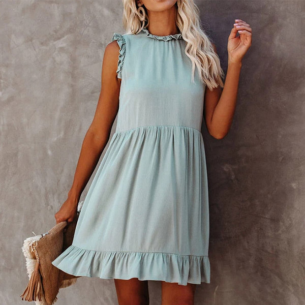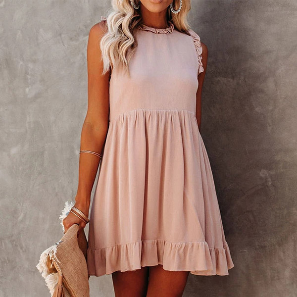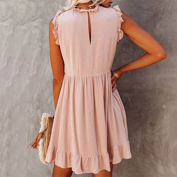 For the summer days,this sleeveless dress can be your perfect partner. The solid color tone design makes it look simple yet generous,while the ruffle hem design will lend you a dash of sweet and feminine appeal. Dress it up with your favourite sandals for your daily out.