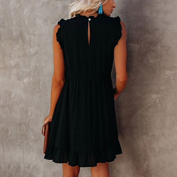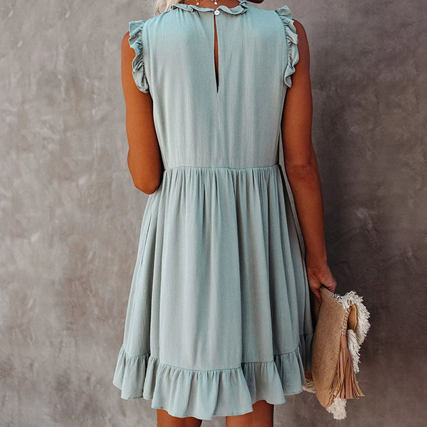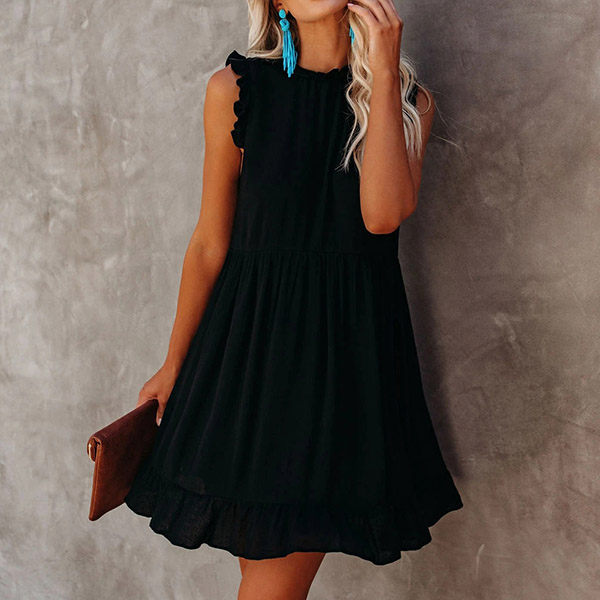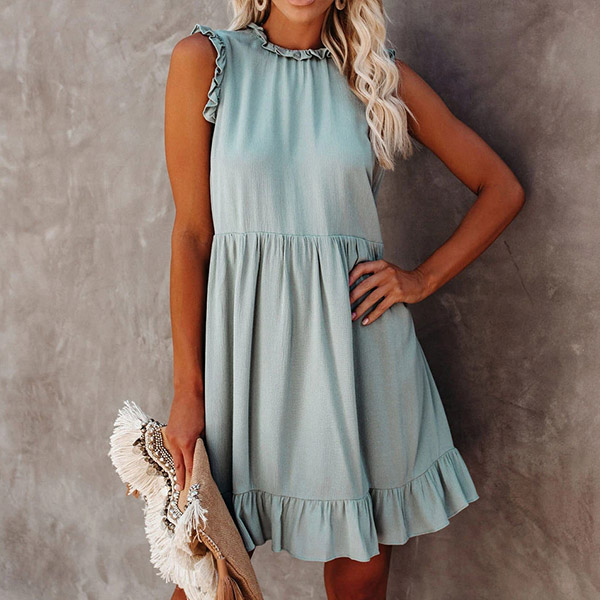 Simple Style Sleeveless Round Neck Ruffle Hem Solid Color Dress