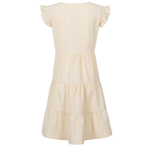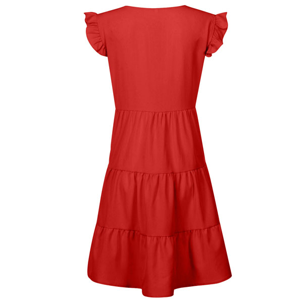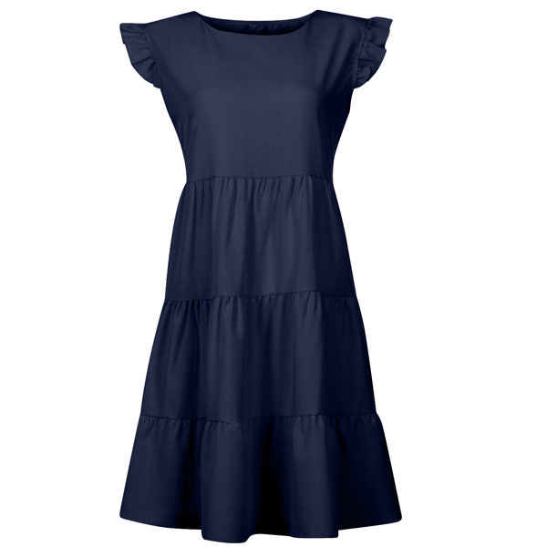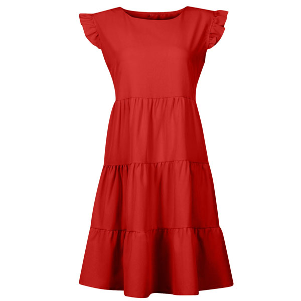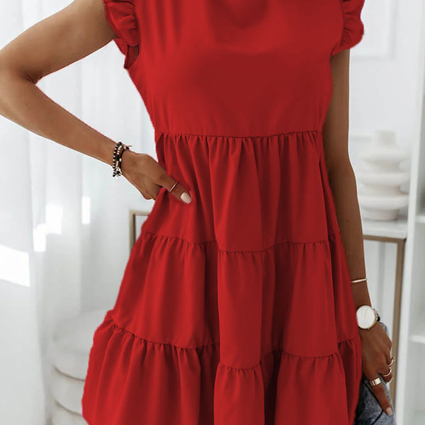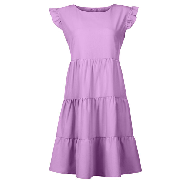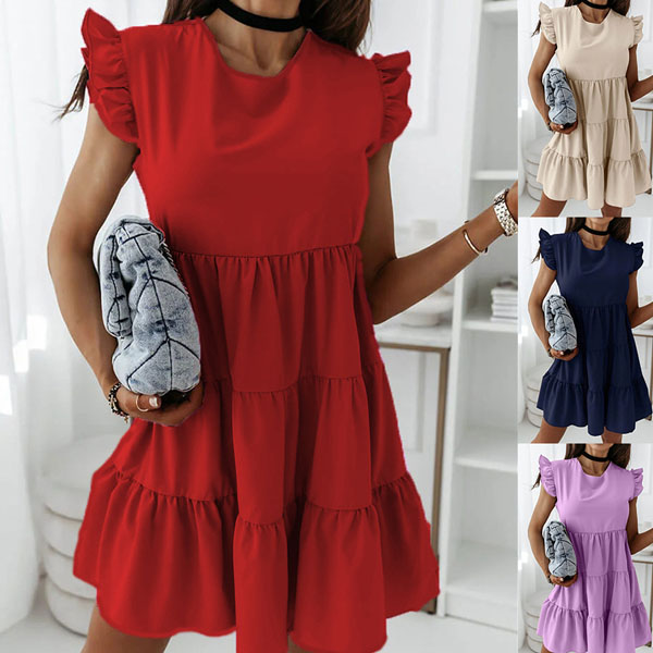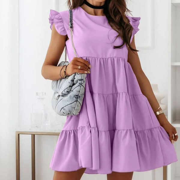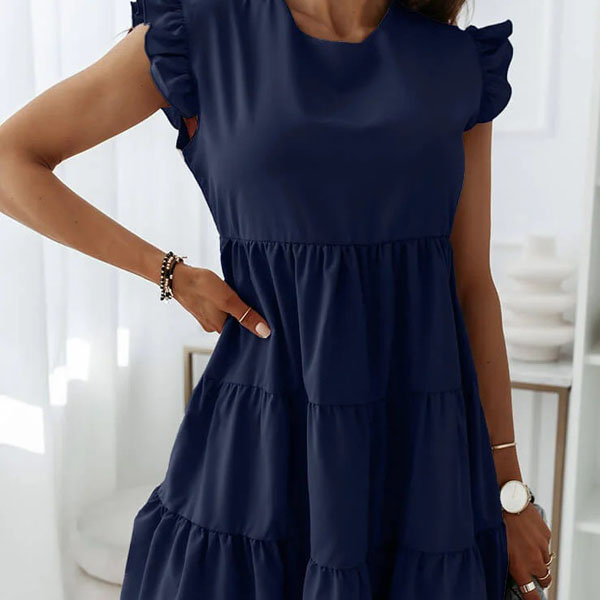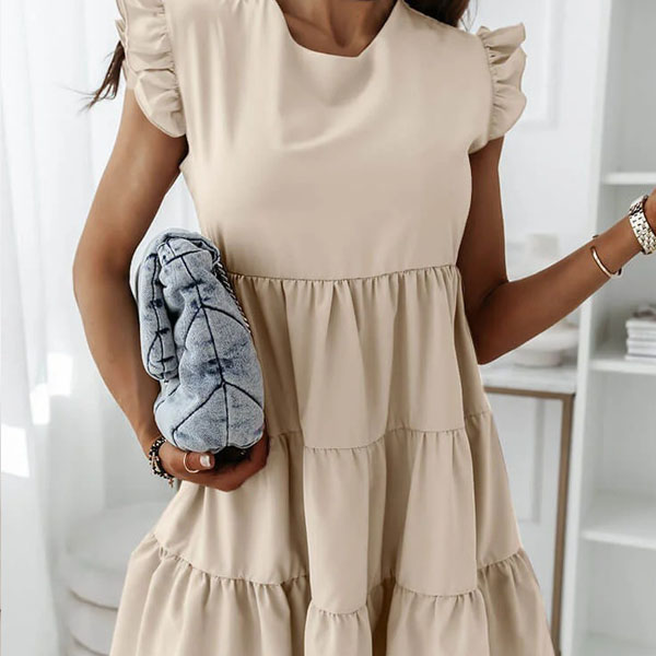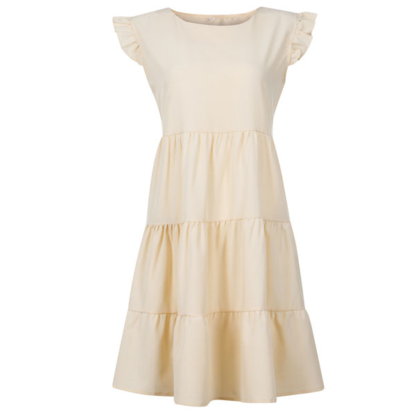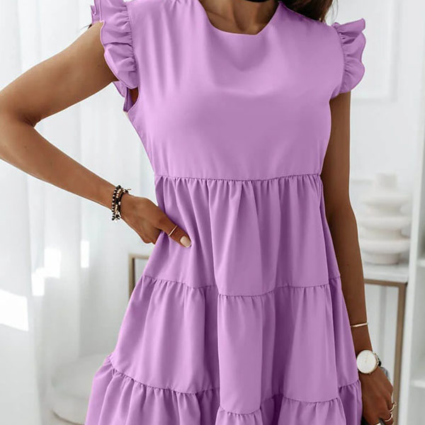 Greeting to the summer by wearing this dress. The ruffle design at the sleeve part makes this piece look very special. Solid color style,with sleeveless,round neck and a loose silhouette,this dress can give you a comfortable day. If you don't like complicated design,why not invite this wonderful dress to your wardrobe ensemble?