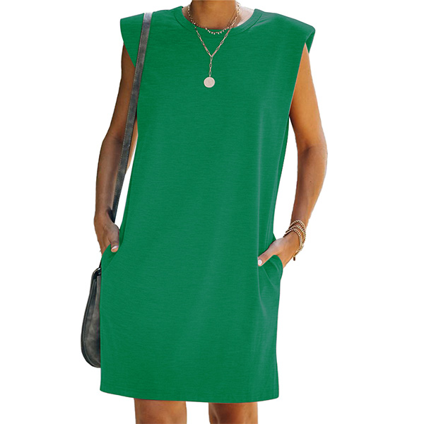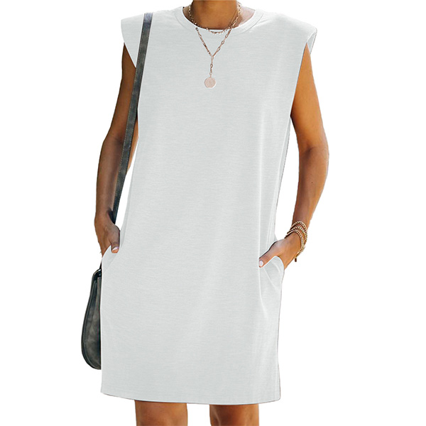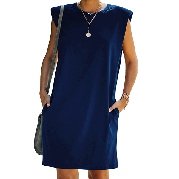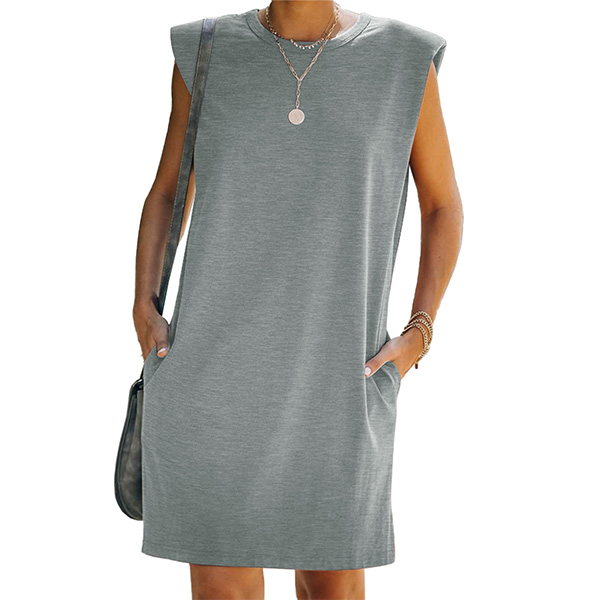For your casual days,this simple style dress can easily strike your mind. Its super soft,breathable fabric can give you the comfortable wearing feeling. In addition,the shoulder pad and pockets design enrich the design style. So why not slip into this dress to exude your personality.