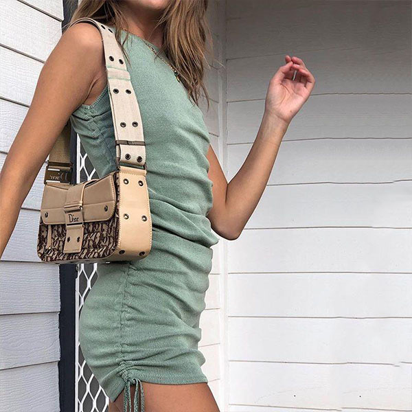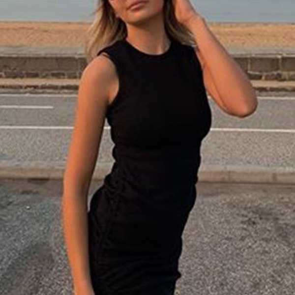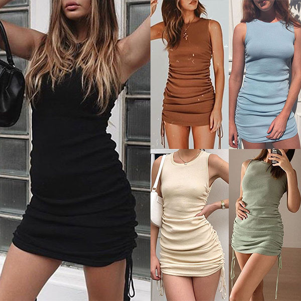 Abito aderente con elastico laterale senza maniche con scollo tondo in stile semplice