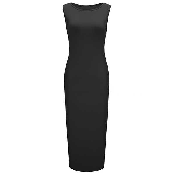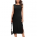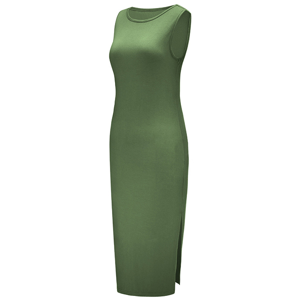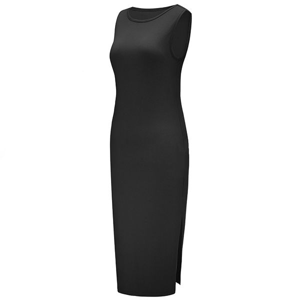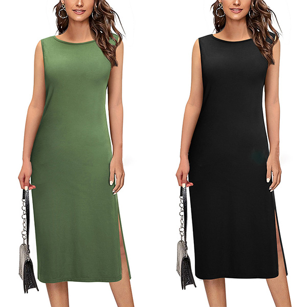 Simple Style Sleeveless Round Neck Side-slit Hem Solid Color Dress
