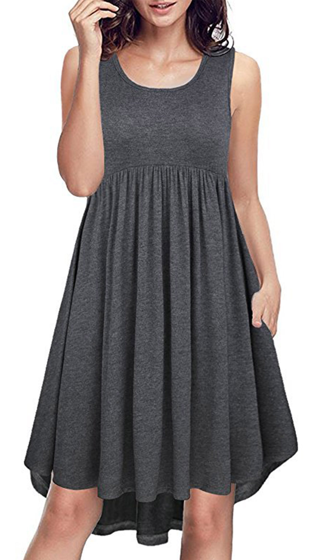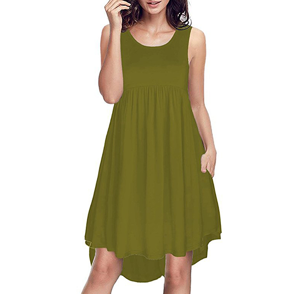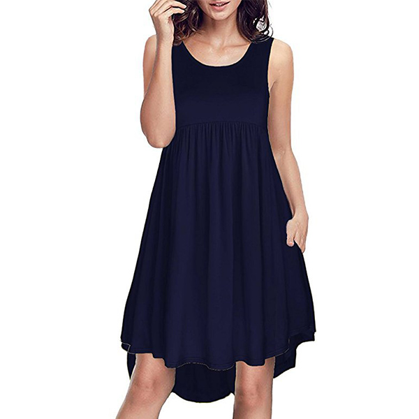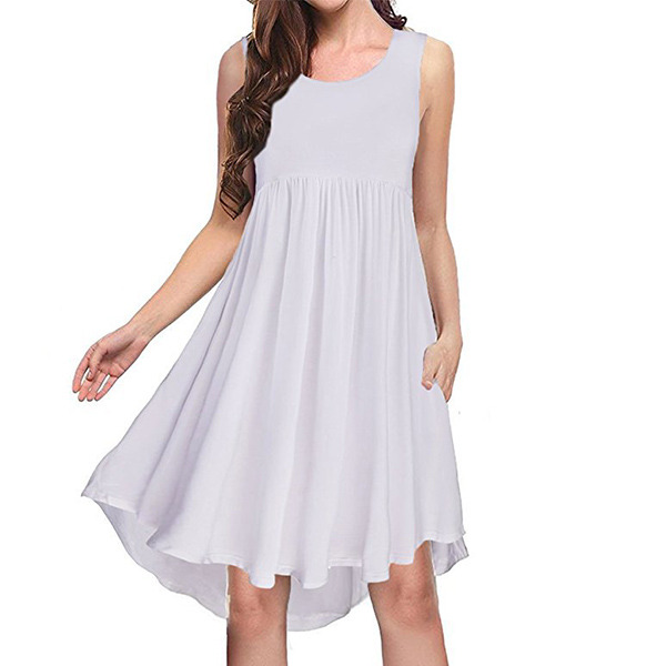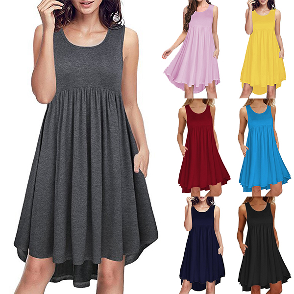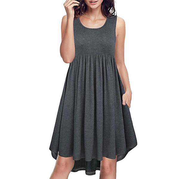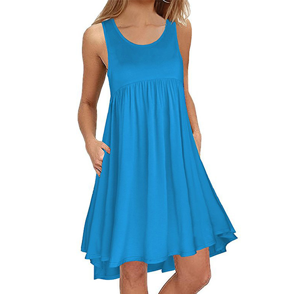 Outfitted with the features of cozy yet stylish,this dress is worth to have a place in your wardrobe. Crafted in a solid color,with sleeveless,round neck and a loose silhouette,this dress can promise you a comfortable day. Different colors for your optional.