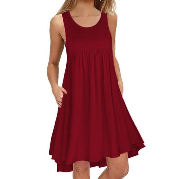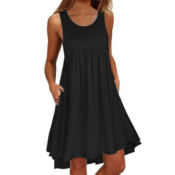 Simple Style Sleeveless Round Neck Solid Color Loose Dress
