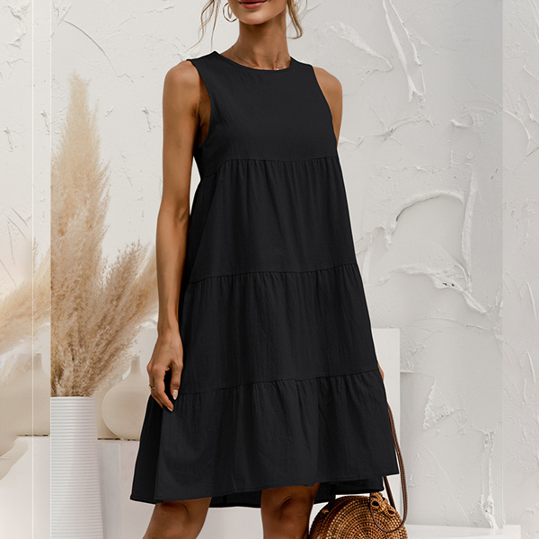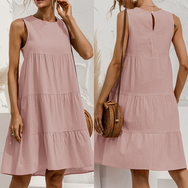 When the summer season hits,then this simple,cozy yet stylish dress would easily strike your mind. Crafted in a solid color,with sleeveless,round neck and a loose silhouette,this piece definitely knows how to give you a cozy yet stylish daily style. It is perfect fit for your weekend trips and night walking.