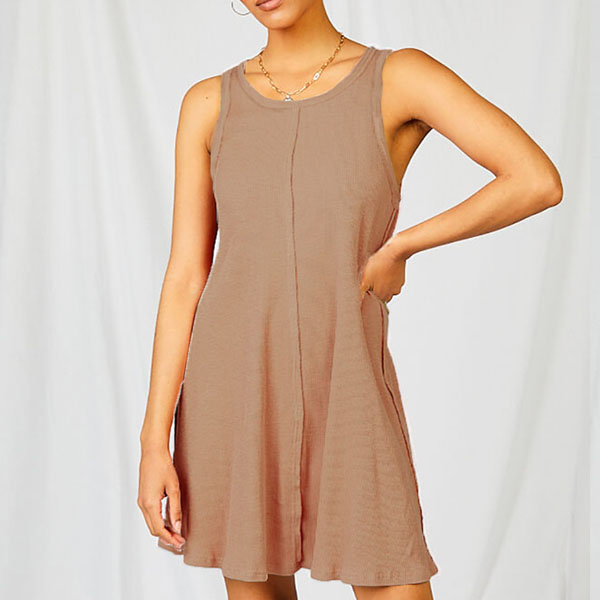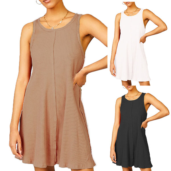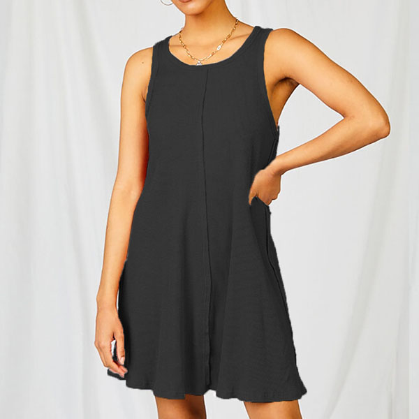 For the summer days,such a simple,cozy yet stylish tank dress would be your wardrobe staple. Solid color tone design makes it look simple yet generous. Finished with sleeveless,round neck and a loose silhouette,this piece can ensure you a cool and comfortable day. Add this piece to your summer wardrobe ensemble!