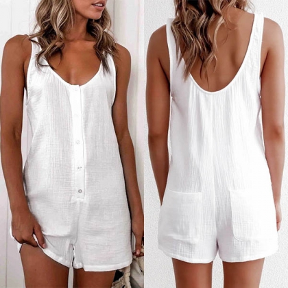 Greet the summer days with this simple,cozy and stylish romper. Solid color style,finished with sleeveless,round neck and a loose silhouette,this piece can promise you a cool and comfortable day. You can easily update your summer style with the help of this little piece.