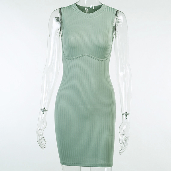 Like simple style dress? Then make your eyes focused on this piece. Solid color style,finished with sleeveless,round neck and a tight silhouette,this dress can demonstrate your slender figure. This is a dress which can fit for different occasions. So why not take interest in it?